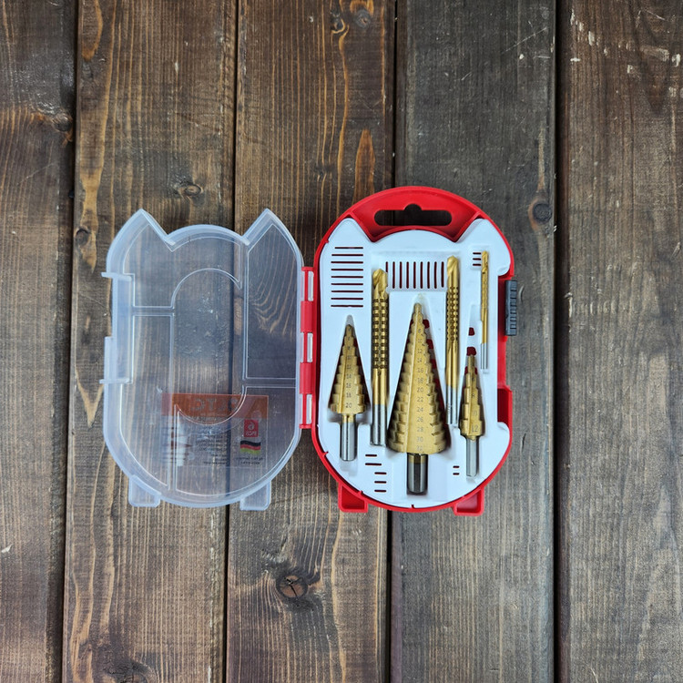 مته پلهای دی ال تی سی جایگزین مناسبی برای سوراخ کاری ورقها به جای متههای معمولی هستند. این مجموعه ساخت چین بوده و از یک جعبه طلقی شیک و محکم برخوردار است. مجموعه فوق شامل 3 عدد مته پلهای در سایزهای 4 تا 12 ، 4 تا 20 و 4 تا 32 در سایزهای زوج است. از طرفی دارای سه عدد مته اره ای به سایزهای 3، 6 و 8 میلیمتر دارد که برای برش از کنار در چوب است در واقع به نوعی کار تیه اور فرز را انجام میدهد. این متهها از جنس فولاد تند بر HSS و از روکش تیتانیوم برخوردار بوده و قابلیت سوراخ کاری روی آهن، برنج، مس، آلومینیوم، چوب و پلاستیک را دارد. البته باید در نظر داشته باشید که عمق هر پله تنها 5 میلیمتر است. پس حتی در نرمترین مواد مانند چوب یا پلاستیک هم نمیتوان بیش از ضخامت 5 میلیمتر را سوراخ کرد. در قطعات سختتر مانند آهن هم حداکثر ضخامت 3 تا 4 میلیمتر پیشنهاد میگردد. و نکته آخر اینکه با به کار بردن آب صابون یا سایر مواد خنک کننده هنگام کار، عمر ابزار را نیز افزایش خواهید داد.